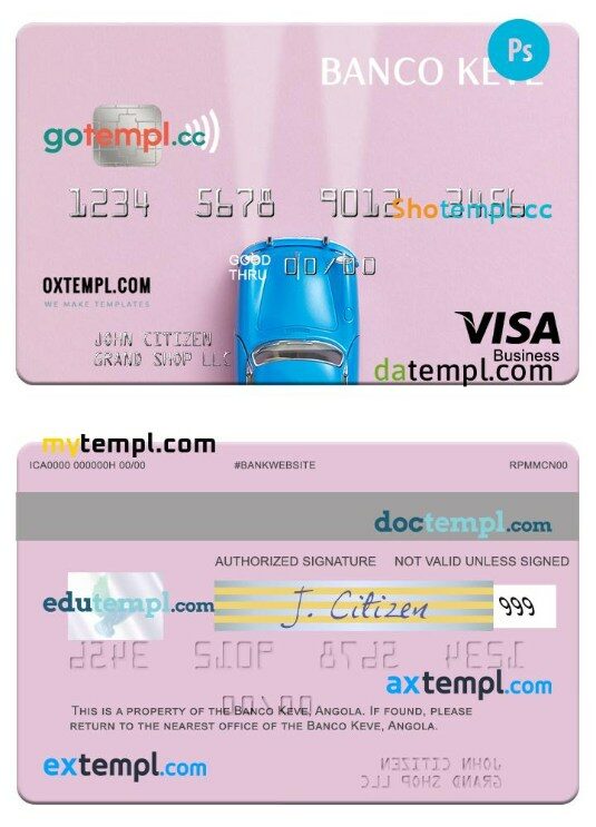 ○ Edit Angola Banco Keve visa business card psd file template yourself,