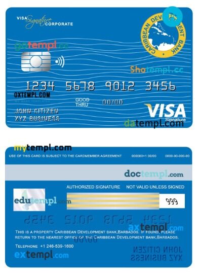 Barbados Caribbean Development Bank corporate visa signature card PSD download template fully editable with the fonts