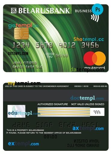 Belarus bank business mastercard PSD download template fully editable with the fonts
