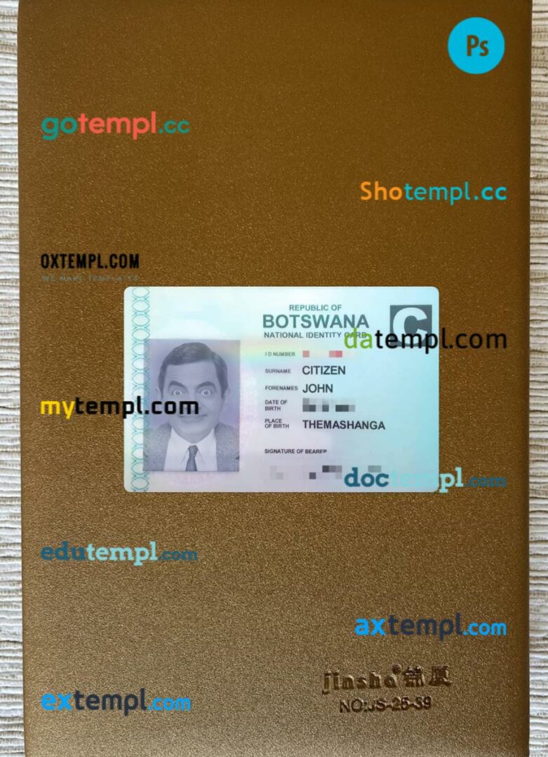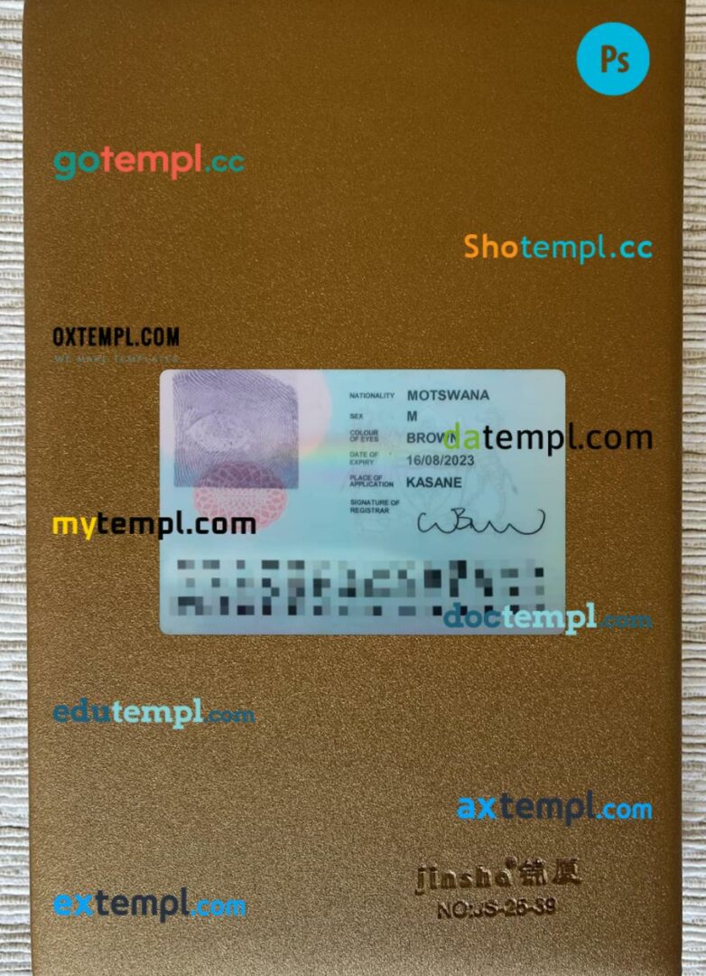Our Botswana national ID template offers two editable variants in one package: editable PSD files for both photo and scan looks. Compatible with Adobe Photoshop, this template is fully customizable, requiring only basic editing knowledge to personalize.