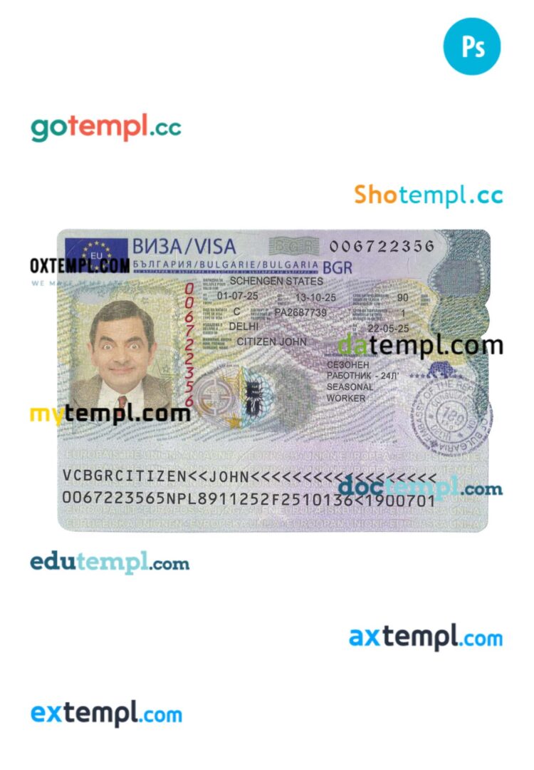 This fake visa sample is in PSD format: you need Photoshop to edit this example: