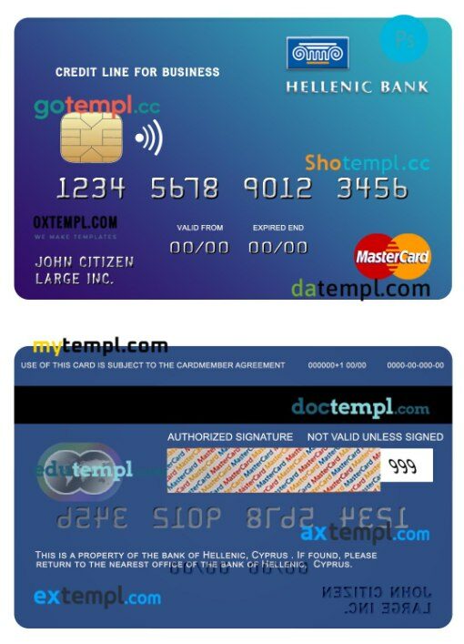 Cyprus Hellenic bank business credit mastercard PSD download template fully editable with the fonts