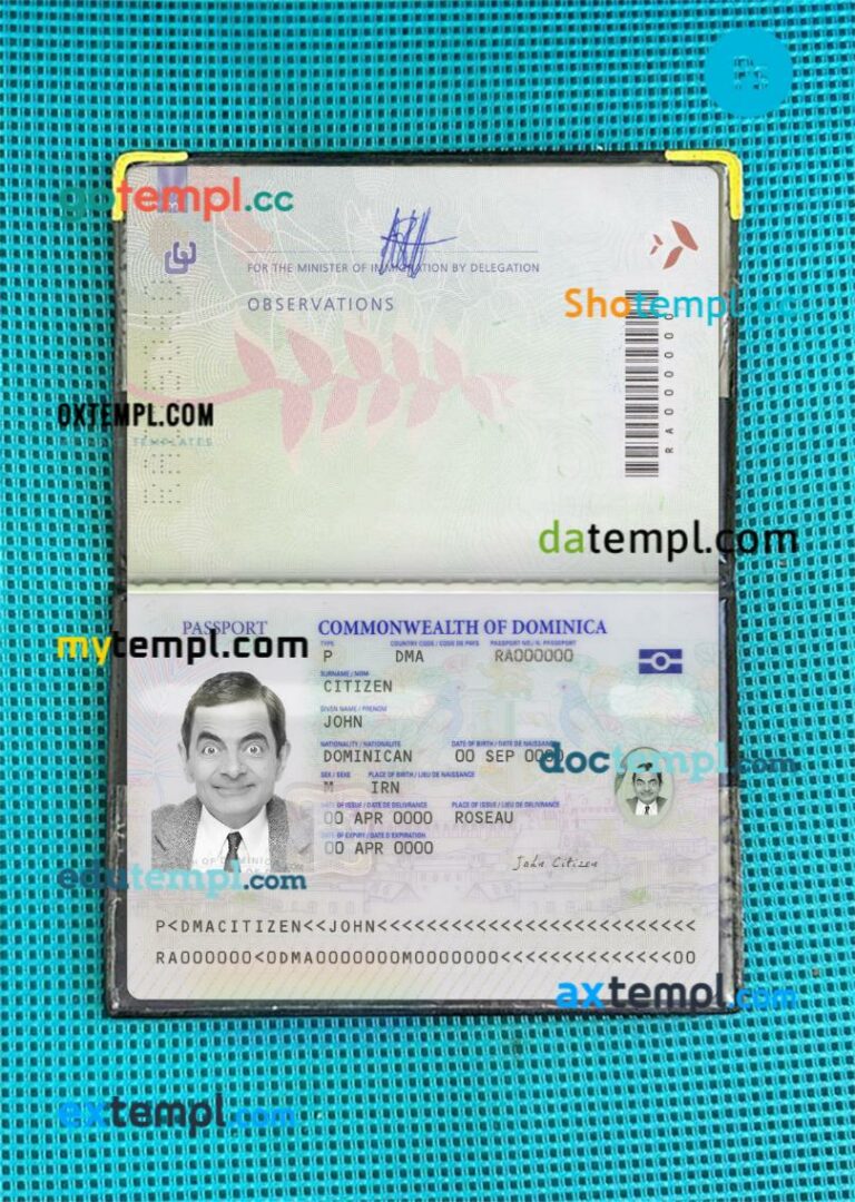 Dominica passport Photoshop template two in one with photo look and scan PSD files, which has a clean design and multi-functional solution.