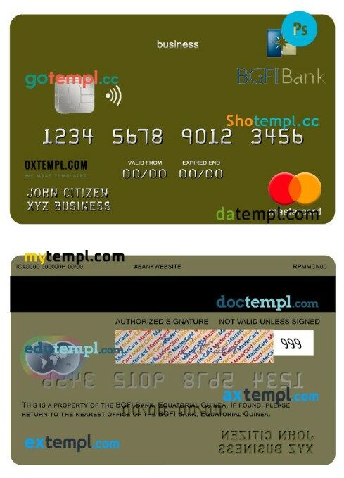 Equatorial Guinea BGFI Bank business mastercard PSD download template fully editable with the fonts