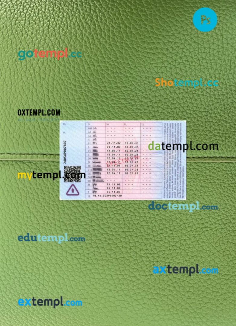 Our Kosovo driving license template offers two options in one package: editable PSD files for both photo and scan looks. Compatible with Adobe Photoshop, this template is fully customizable, requiring only basic editing knowledge to personalize.