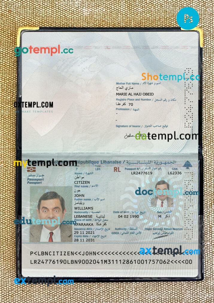 Lebanon passport Photoshop template two in one with photo look and scan PSD files, which has a clean design and multi-functional solution.