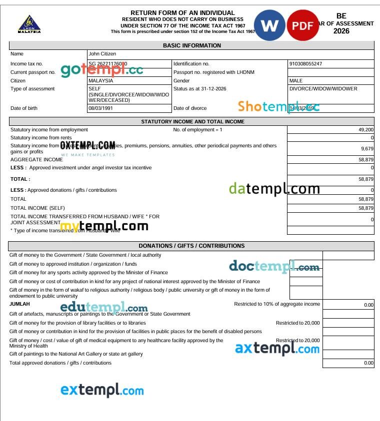 Malaysia Income Tax Return Form template in Word and PDF formats