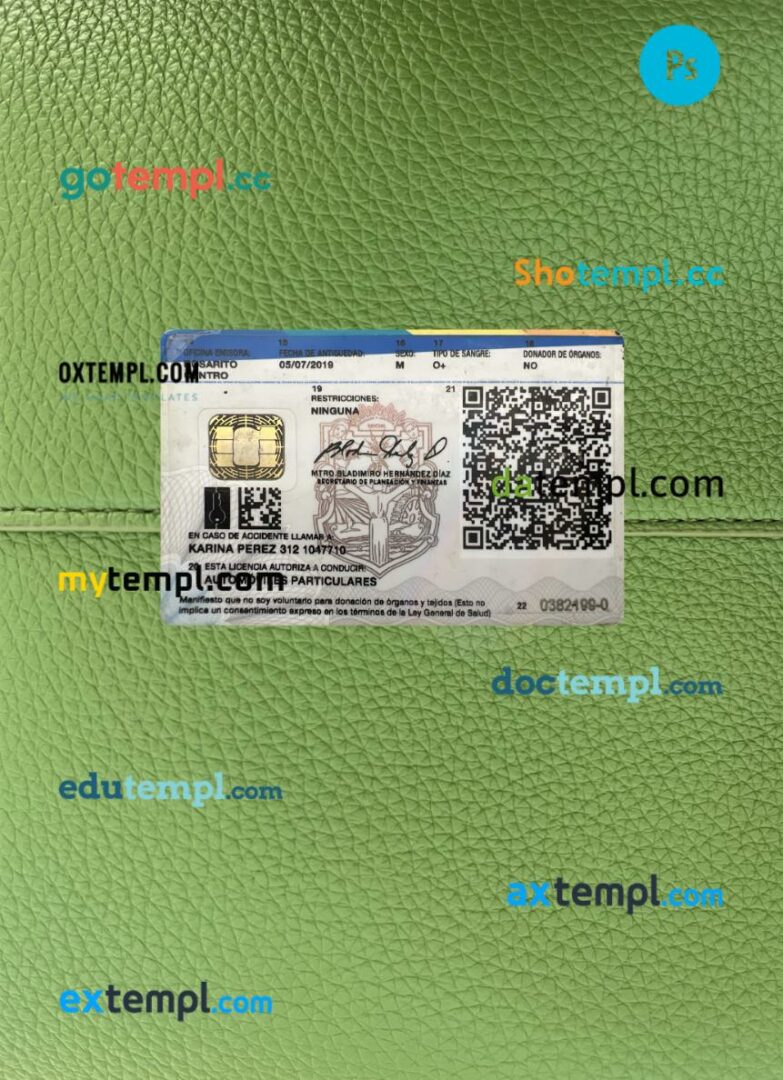 Our Mexico Baja California state driving license template offers two options in one package: editable PSD files for both photo and scan looks. Compatible with Adobe Photoshop, this template is fully customizable, requiring only basic editing knowledge to personalize.