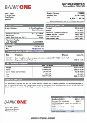 Australian Colonial First State Bank statement example in Excel and PDF format, fully editable
