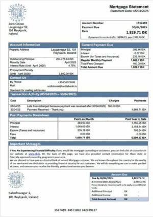 USA Washington Metabank mortgage statement in Word and PDF formats