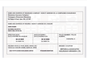 Canada Wawanesa Insurance Company car insurance card Word and PDF template