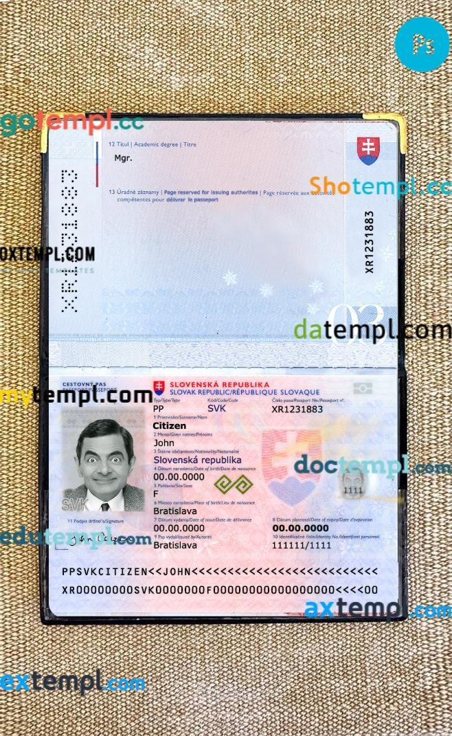 Slovakia passport Photoshop template two in one with photo look and scan PSD files, which has a clean design and multi-functional solution.