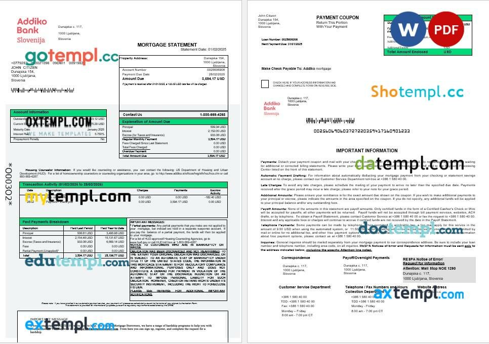It typically includes detailed information about your loan, including: outstanding loan balance, payment history, payment due, interest and principal breakdown, escrow account, past due amount (if any), interest rate, loan terms and additional fees.