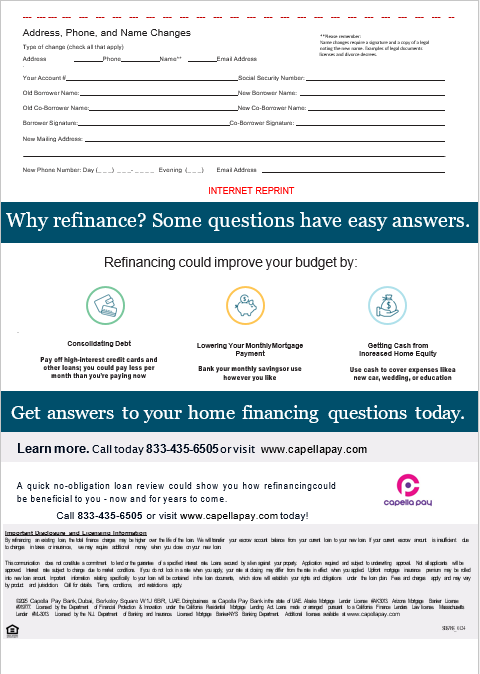 It typically includes detailed information about your loan, including: outstanding loan balance, payment history, payment due, interest and principal breakdown, escrow account, past due amount (if any), interest rate, loan terms and additional fees.