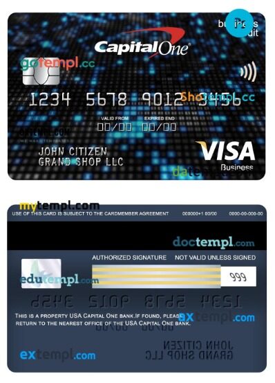 USA Capital One bank visa business credit card PSD download template fully editable with the fonts
