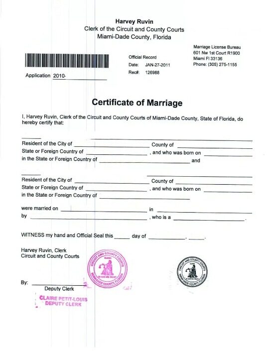 USA Circuit and county courts of Florida marriage certificate PSD download template fully editable with the fonts