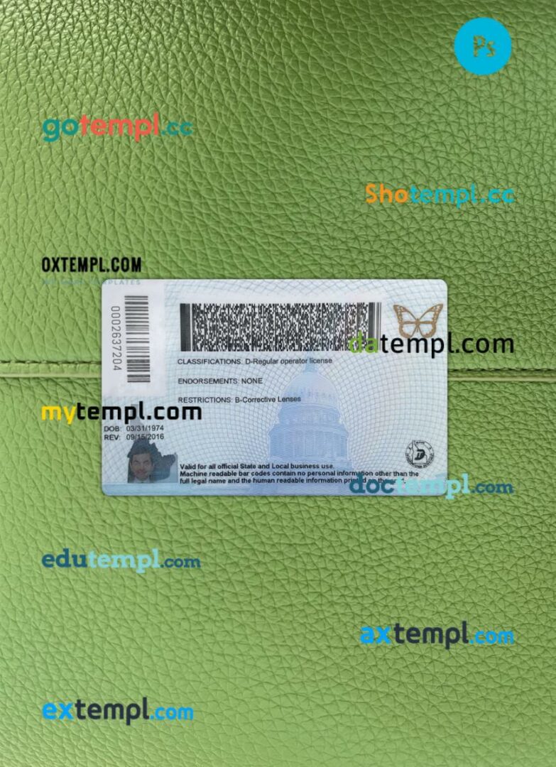Our USA Idaho driving license template offers two options in one package: editable PSD files for both photo and scan looks. Compatible with Adobe Photoshop, this template is fully customizable, requiring only basic editing knowledge to personalize.