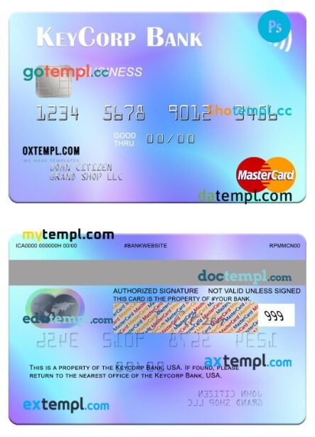 USA KeyCorp Bank business mastercard PSD download template fully editable with the fonts