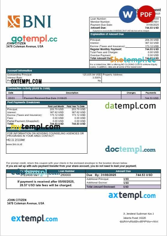 It typically includes detailed information about your loan, including: outstanding loan balance, payment history, payment due, interest and principal breakdown, escrow account, past due amount (if any), interest rate, loan terms and additional fees.